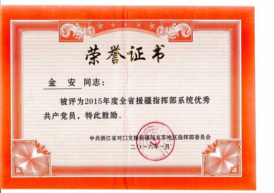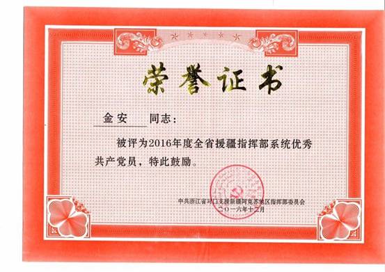 援疆期间,金安老师荣获“优秀援疆人才”、“优秀援疆共产党员”(2015-2016)光荣称号,他的优秀事迹将激励更多的的宁大教师踏上援疆之路,为新疆的高等教学发展做出应有的贡献,也在百家乐策略 工商团队兴起了一股学习援疆模范的浪潮。