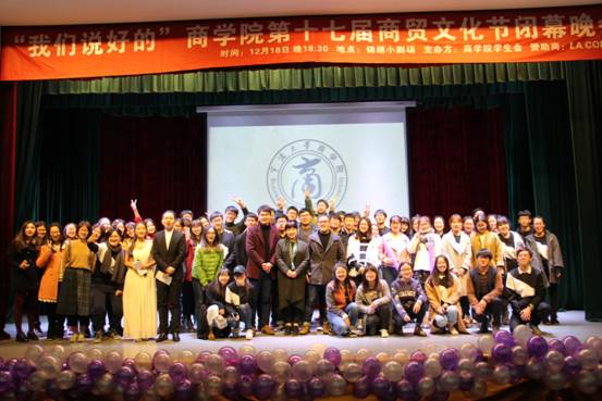 近日,由百家乐策略 学生会主办的第十七届商贸文化节闭幕晚会在锦绣小剧场顺利举行。学工办主任董璐、院团委书记陈彬以及农业银行、新航道英语两家赞助商代表出席晚会并为商贸文化节获奖学生颁奖。全院200多名师生观看了晚会。