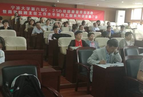 5月24日下午1点半,百家乐策略 2017年班主任工作水平提升工程系列讲座第二讲在百家乐策略 109报告厅举行。本次讲座的主题为“危机事件压力管理实务培训”,会议由百家乐策略 党委副书记邵丽主持,主讲嘉宾为浙江大学心理健康教育与咨询中心专职咨询师刘艳老师,百家乐策略 全体班主任及学工办辅导员参加了本次讲座。