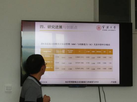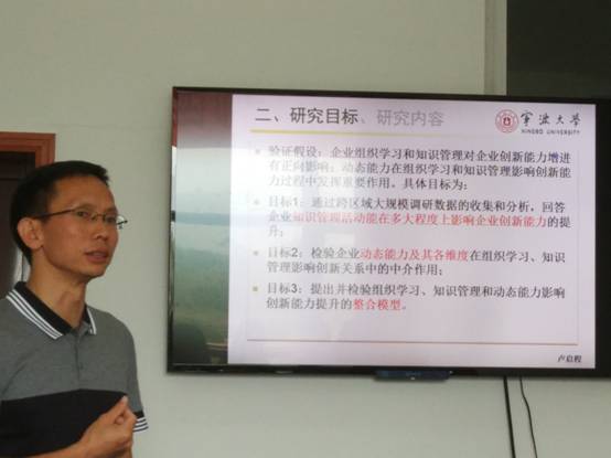 卢启程博士后通过数据分析和实例研究,发现虽然大量的研发投入增强了企业的组织学习和知识获取能力,增加了知识基,同时也扩大了企业在业界的影响力,但广泛的产学研合作、大量的创新投入并未给企业带来显著的研发绩效。现有研究未能在知识与企业创新能力之间构建有效联系,知识与创新的关系模糊,动态能力在组织创新中的地位不明确,需要在统一的战略框架下认识组织学习、知识管理对创新能力的影响。卢博士后在文献研究的基础上,通过典型案例研究和大规模问卷调查开展实证分析,再应用实证结果对理论和假设做出修正,并在管理实践方面做了的探索。卢博士后关于创新能力整合模型的提出和验证有效地回答了“组织学习和知识管理如何带来创新能力提升”这一理论难题;引入企业动态能力理论实现创新与主流战略管理理论的对话与融合,有效地回答了“为何同样的知识平台和学习努力,却存在不同的创新绩效”这一理论难题。报告之后,点评专家高度评价了卢启程博士后所做的研究工作,并就创新能力与企业绩效之间的关系展开了讨论,提出在后续研究中可以将企业异质性这一变量纳入研究体系。
