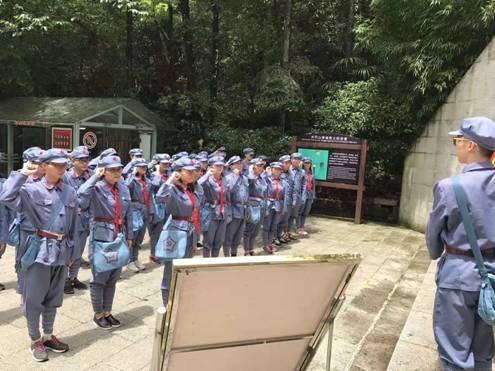 6月29日,全体师生先后在黄洋界保卫战旧址、造币厂、小井红军医院等革命圣地接受了现场教学,听取了革命先烈们前赴后继、勇于奉献、不畏生死的英雄事迹,深深地触动了每位师生的心灵。随后,全体师生身着红军军服,在红色精神的感召下,重走朱毛红军挑粮小道,体验红军当年革命的艰辛。