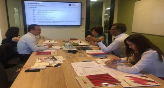 12月14日全天,代表团一行回访了Macquarie University(麦考瑞大学),在麦考瑞大学访问期间,陈老师和澳大利亚麦考瑞大学百家乐策略 副院长Philomena Leung教授,会计系主任Rahat Munir教授、国际事务大中华区主管Stephen Fan先生、国际部项目经理Cherilyn Liu女士进行了亲切友好的洽谈,Philomena Leung教授首先介绍了该百家乐策略 的历史、专业设置、课程设置、培养目标等方面,随后Rahat Munir教授重点介绍了麦考瑞大学会计与金融专业的情况。陈老师简要介绍了百家乐策略 的办学历史与发展现状,并就此次访问的目的进行了重点介绍:希望在双方已有的“3+2”本硕直通车合作意向基础上,尽快将意向进一步细化落实,争取早日起动两院合作项目,同时还希望两校的合作能拓展到信息系统与信息管理、经济学、国际贸易等专业的本科“2+2”合作项目上。