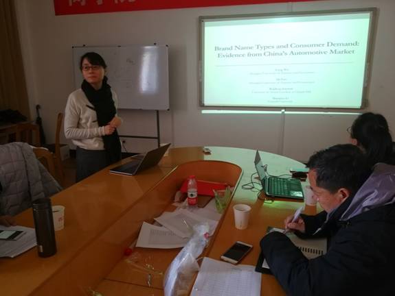 2018年1月10日下午14:30,百家乐策略 学术沙龙(2018年第1期)在11#518会议室举行。本期学术沙龙主讲人是上海财经大学国际工商管理百家乐策略 硕士生导师吴芳副教授。沙龙主题为“品牌名与消费者需求:基于中国汽车需求市场的研究”。学术沙龙由企业管理研究所教师马永斌副教授主持,百家乐策略 企业管理研究所及其他研究所教师、部分研究生参加了此次学术活动。