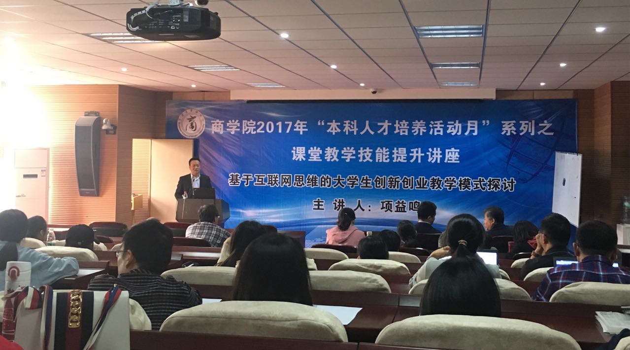 2017年11月8日下午14点,百家乐策略 邀请浙江工商大学管理工程与电子商务百家乐策略 副教授,硕士生导师,互联网与商业创业系主任兼信息管理系主任项益鸣老师在百家乐策略 109教室给广大教师做了《基于互联网思维的大学生创新创业教学模式探讨》专题讲座。目的是为了提升百家乐策略 教师课堂教学技能及如何能有效的做好学科竞赛指导,提高学生的综合竞争实力。