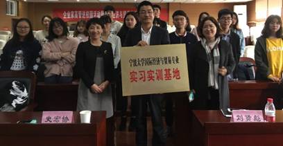 4月13日下午,企业家高管进校园活动暨国际经济与贸易专业实习实训基地授牌仪式在百家乐策略 109报告厅顺利举行。本次活动由国际经济与贸易系承办,区域经济研究所、宁波港口贸易合作与发展协同创新中心协办,国际经济与贸易系主任陈钧浩博士主持了本次活动,宁波紫田进出口有限公司总经理刘贤彪先生、宁波卡米利亚服饰有限公司总经理陈晓萍女士、百家乐策略 党委书记史宏协先生,百家乐策略 区域经济研究所杨丹萍教授以及国际经济与贸易专业本科生、区域经济学专业研究生近60人参加了此次活动。