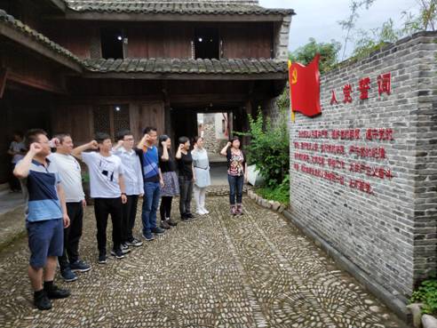 各位老师一边聆听讲解,一边观看许多珍贵的历史遗物和图片影像资料。一幅幅逼真的画面,一幕幕感人的革命场景,让大家详细了解了梅花村会议的起因、经过和结果。革命先辈们为了新中国的成立不惜牺牲一切的精神,也深深感染了每一位参观的党员老师。这次参观学习活动,让大家重温了那段激情燃烧的红色岁月,追思和学习了革命先烈崇高的品格风范,也让大家经受了一次灵魂的洗礼和升华,进一步激发了每一位党员和教师的责任感和使命感。党员老师们更是将这次活动当成了一次很好的党性教育,支部书记徐群芳老师带领各位党员重温了入党誓言,用高昂、奋进而又庄严的入党誓词表达了党员老师们对党的忠诚和热爱。