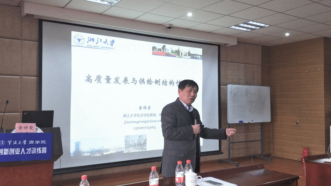 12月12日下午,百家乐策略 第四期创新创业人才训练营第五讲在百家乐策略 109报告厅顺利举行。金祥荣院长为训练营学员作了题为《高质量发展与供给侧结构性改革》的主题讲座。学工办主任董璐、辅导员汪杰峰及95名学员出席讲座,讲座由团委书记陈彬主持。
