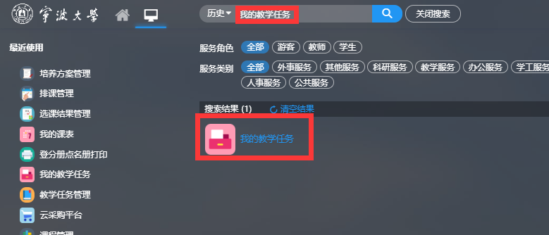 1、在“网上办事大厅”中搜索“我的教学任务”APP,点击进入。