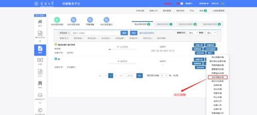 4. 进入项目组成员,请确认成员是否完整。特别是项目中有学生的参与的,请完善学生身份类别。成员信息有问题的,进入科研系统百家乐策略,左侧的项目界面,点击操作下拉框下的成员调整申请,进入成员调整界面进行添加和修改,待项目主管审核之后,会自动补充到项目经费公开一览表,最后再提交即可。
