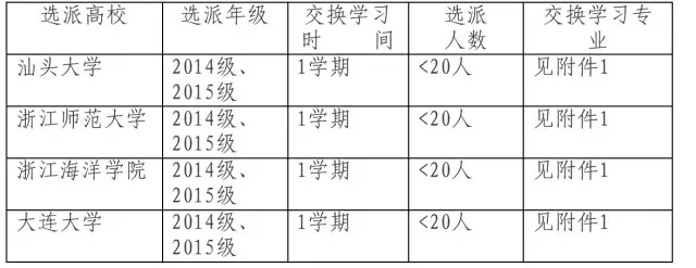 为了提高本科人才培养质量,加强与国内高校“资源共享、优势互补”,以拓展学生专业视野、感受异地校园学术及文化氛围、享受优质教学资源、提高综合素质与能力,百家乐策略 将从2014级、2015级本科生中选拔优秀学生于2016-2017学年春季学期赴浙江师范大学、浙江海洋百家乐策略 、大连大学交换学习,为期1学期。为做好选派工作,现将有关事宜通知如下: