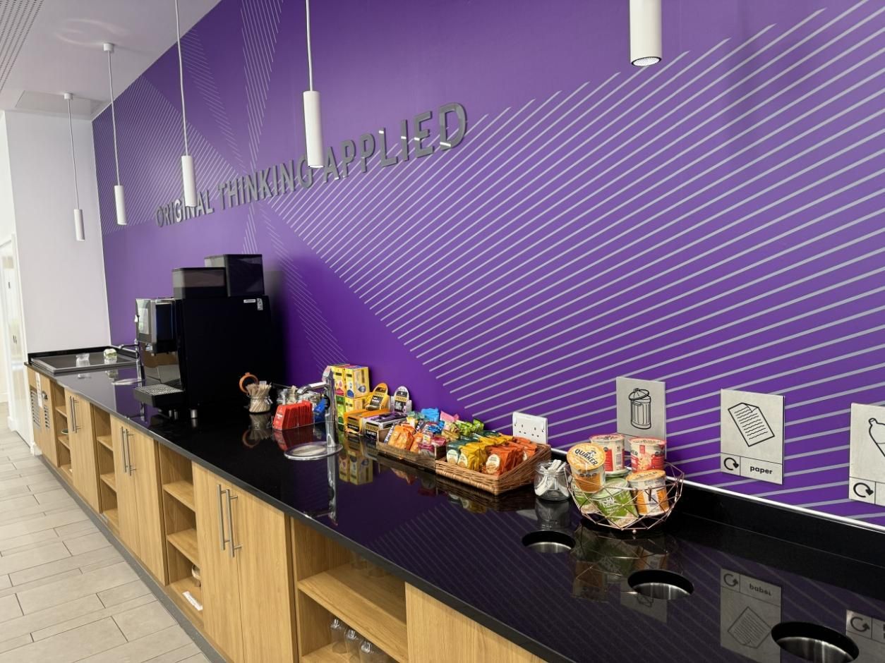 图为曼大百家乐策略 第一天注册材料,舒适的教学环境,教室外每日提供免费自助的水果、咖啡、茶、小食等供学生选择。