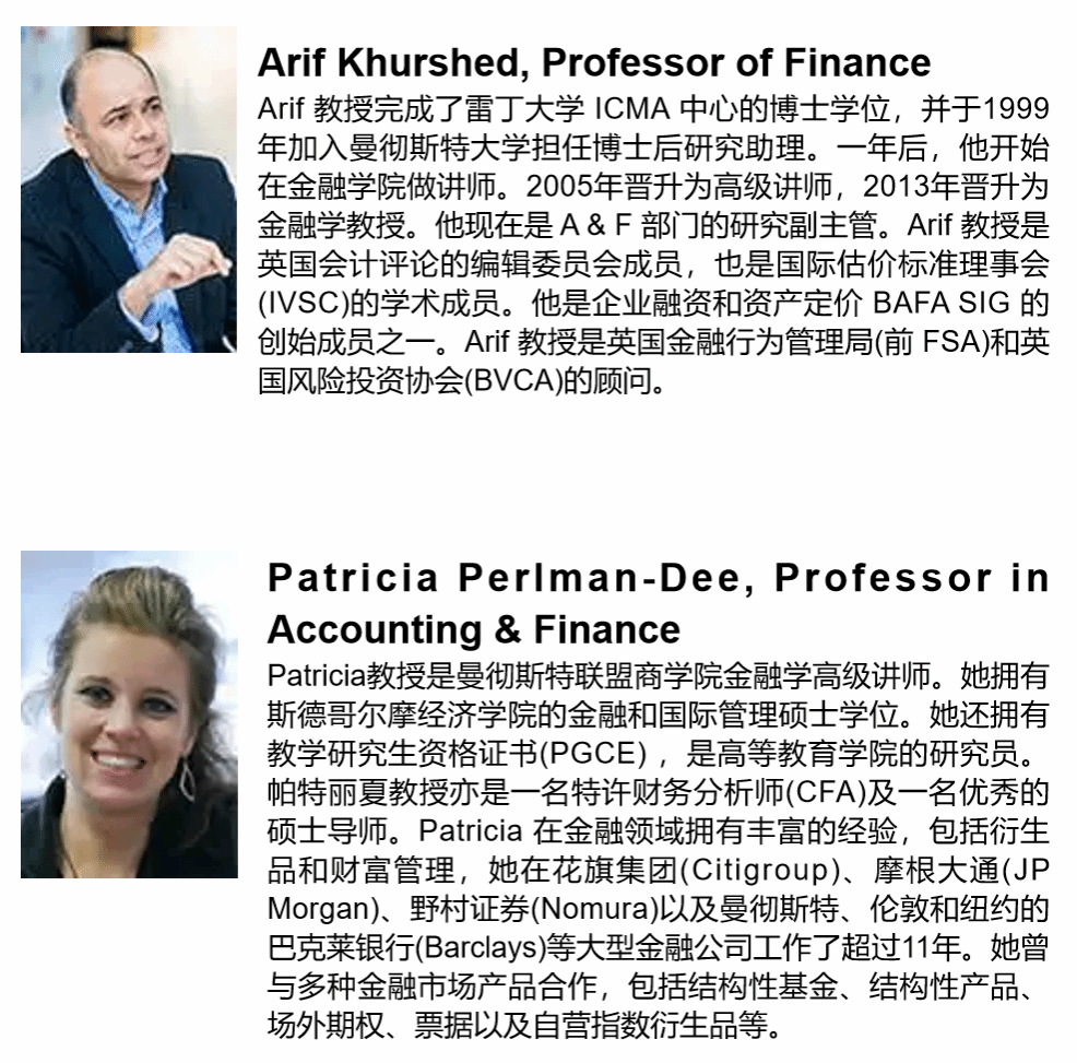 项目中的专业课程均为曼彻斯特大学百家乐策略 会计与金融专业本科学生所入读的专业必修课程,全程由曼彻斯特大学百家乐策略 的全职教授授课,使得参加项目的同学可以获得最原汁原味的曼大学习体验。